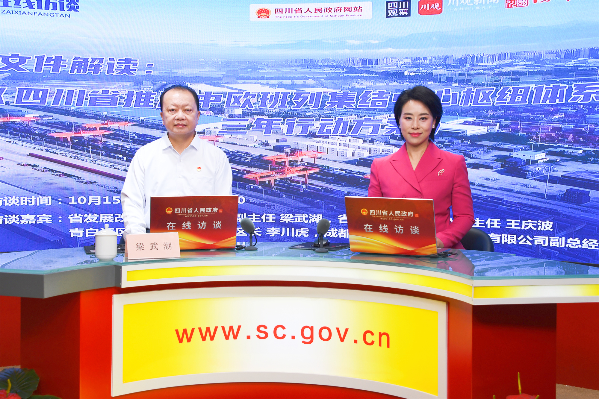 为了让广大网友深入了解《四川省推动中欧班列集结中心枢纽体系建设三年行动方案》(以下简称“行动方案”)的有关内容,10月15日,四川省发改委党组成员、副主任梁武湖做客省政府网站“在线访谈”栏目,解读文件并与广大网友进行交流。